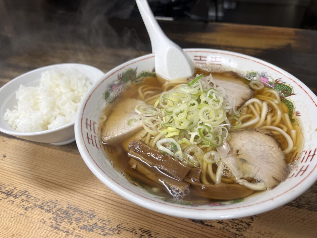 ※下の画像は朝7時に食べた「煮干しラーメン」(青森では朝ラーメンが人気で7時過ぎには満席になってました笑)